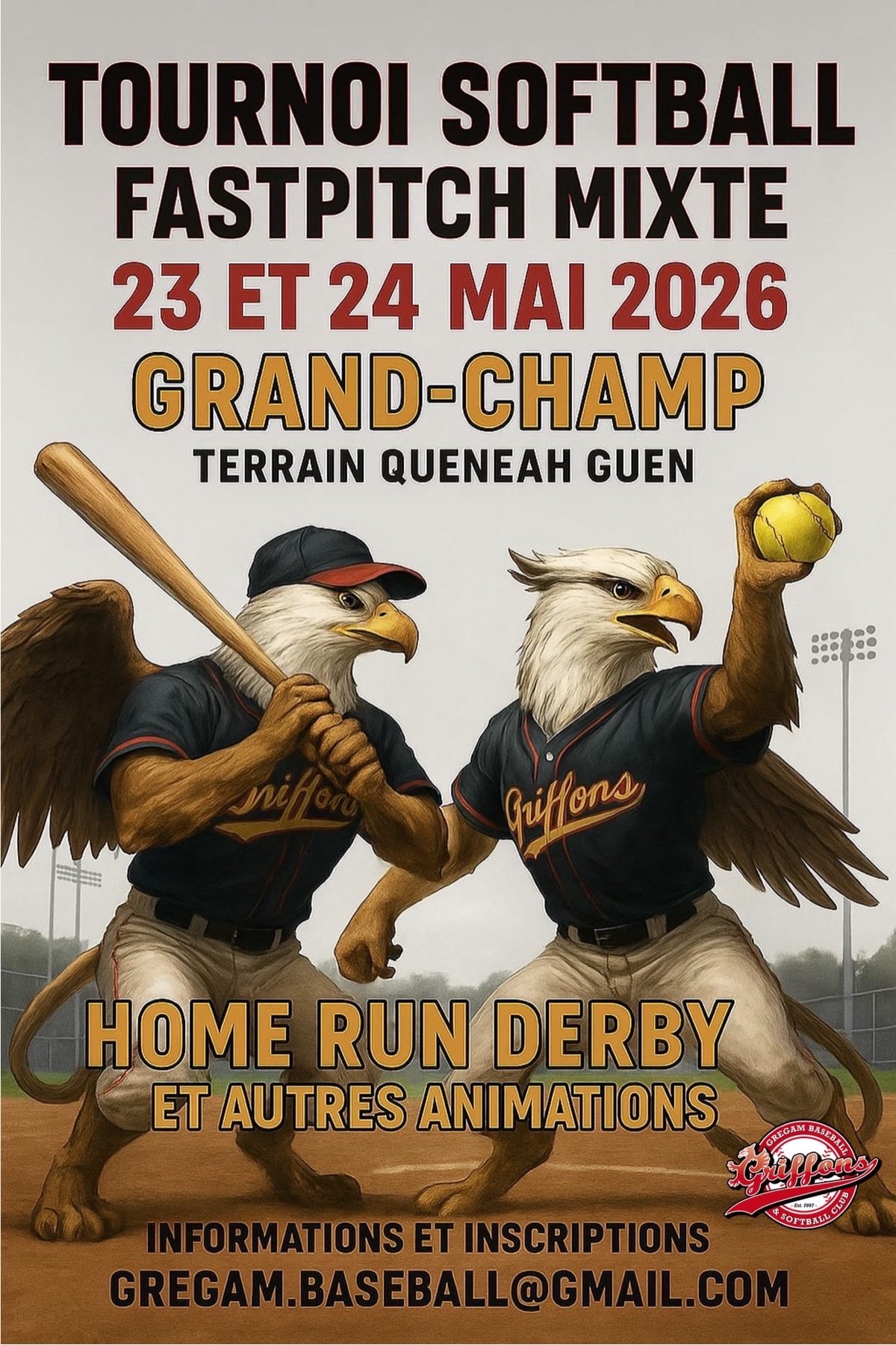 23 mai 24 mai Sport & bien-être Tournoi de softball mixte Du samedi 23 mai au dimanche 24 mai 2026De 09h00 à 17h00Stade QUENEAH GUENOrganisé par Gregam Baseball Tarifs Événement gratuit Photos