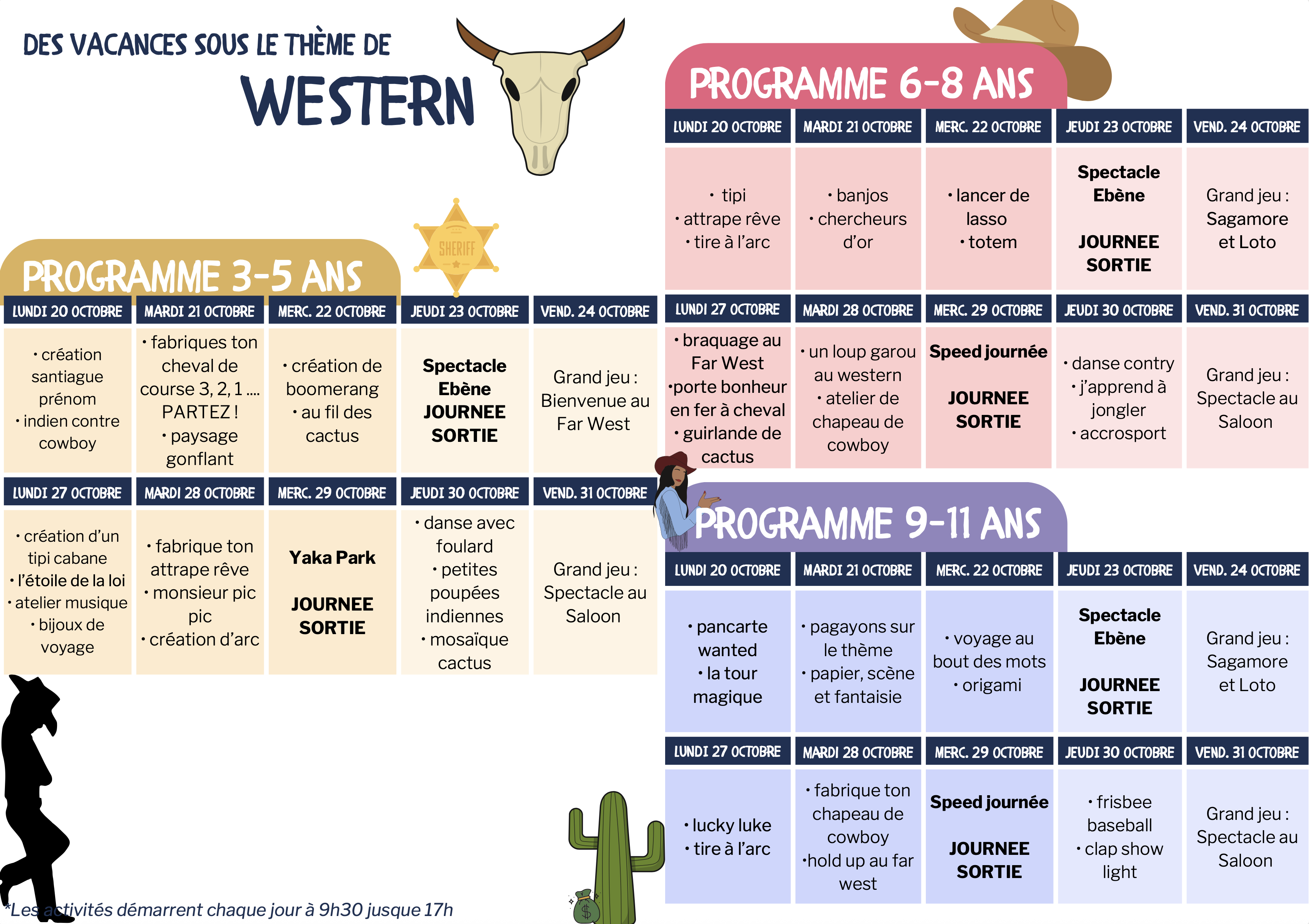 Consultez le programme des vacances ci-dessous, ou téléchargez la plaquette ci-contre, à droite dans le bloc bleu des téléchargements !