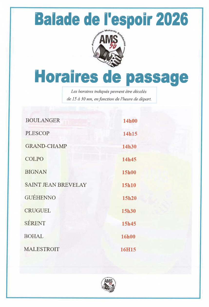 Le dimanche 12 avril 2026, les motards se mobilisent à nouveau pour soutenir la recherche contre la sclérose en plaques lors de La Balade de l’Espoir, organisée par l’AMS 56 – Association Motards Solidarité 56.