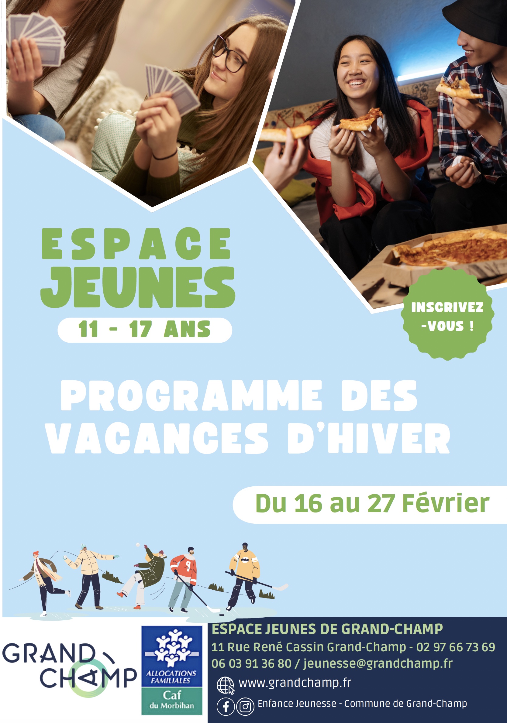 Durant toutes les vacances scolaires, la commune de Grand-Champ organise un accueil de loisirs ALSH (sans hébergement) destiné aux 11-17 ans.