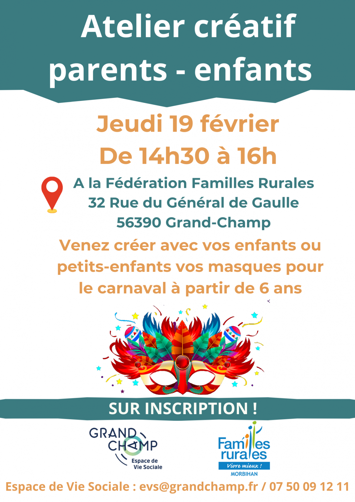 19 fév. Cours & atelier Atelier masques du carnaval jeudi 19 février de 14h30 à 16h00Venez avec vos enfants et vos petits enfants créer vos masques pour le carnaval. L'atelier est à partir de 6 ans et sur inscription. Tarifs Événement gratuit Photos