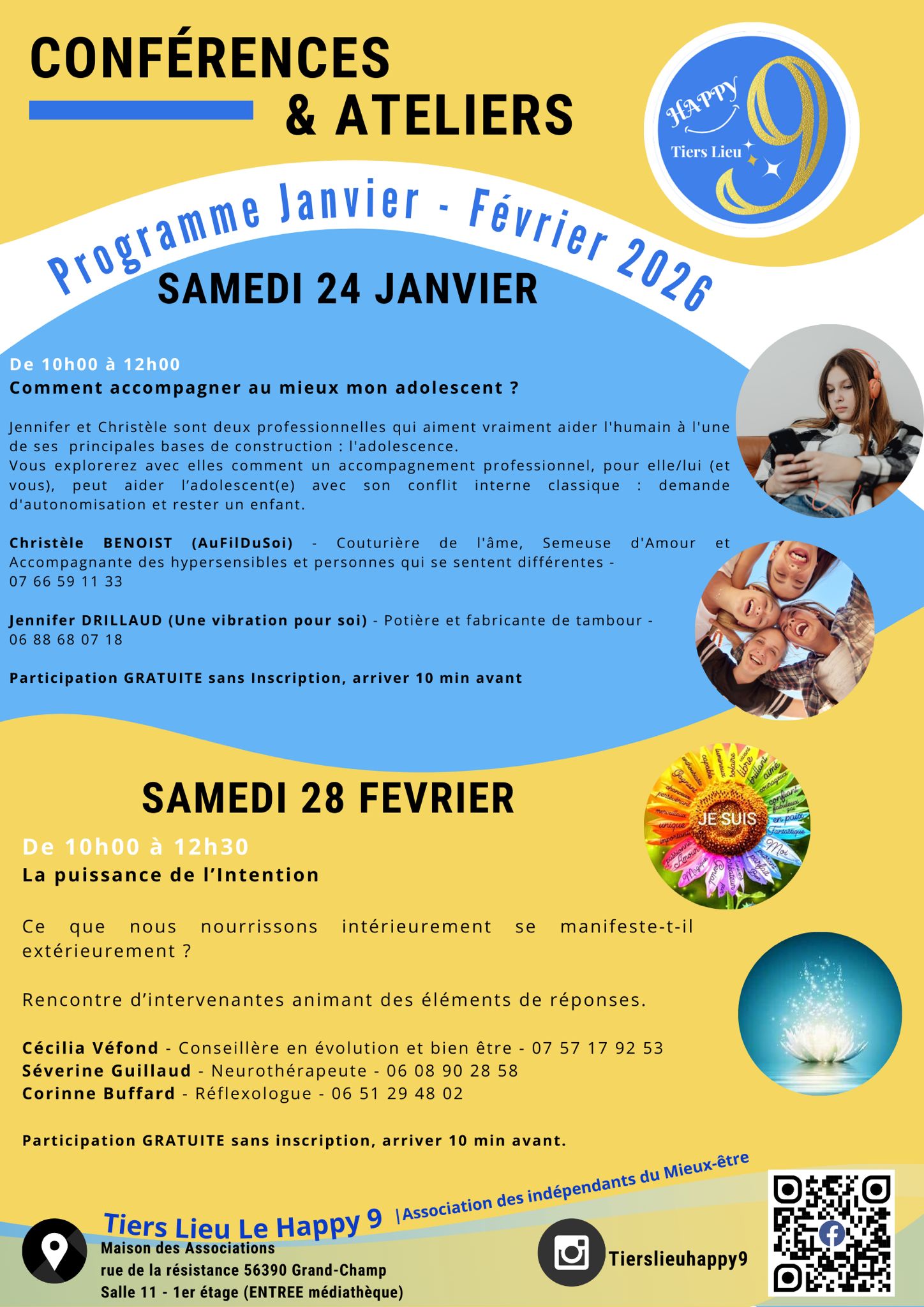 24 jan. 28 fév. Loisirs Conférences et ateliers Tiers Lieu Le Happy 9 L'association grégamiste organise un cycle de conférences et d'ateliers à la Maison des associations de Grand-Champ.