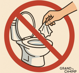 Les lingettes vont à la poubelle, pas dans les toilettes !