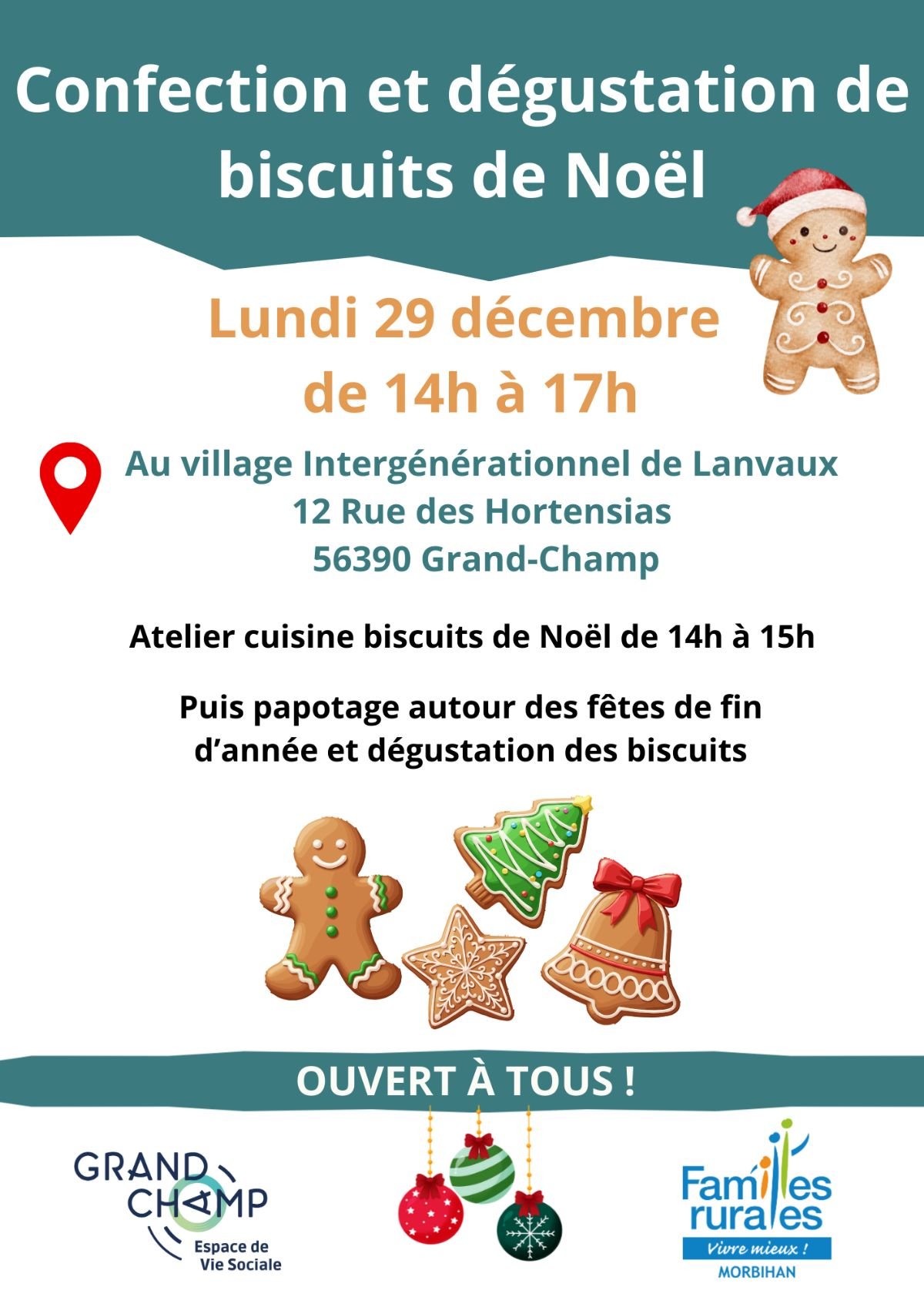 Retrouvez les animatrices de l'EVS le lundi 29 décembre pour confectionner et déguster des biscuits de Noël.