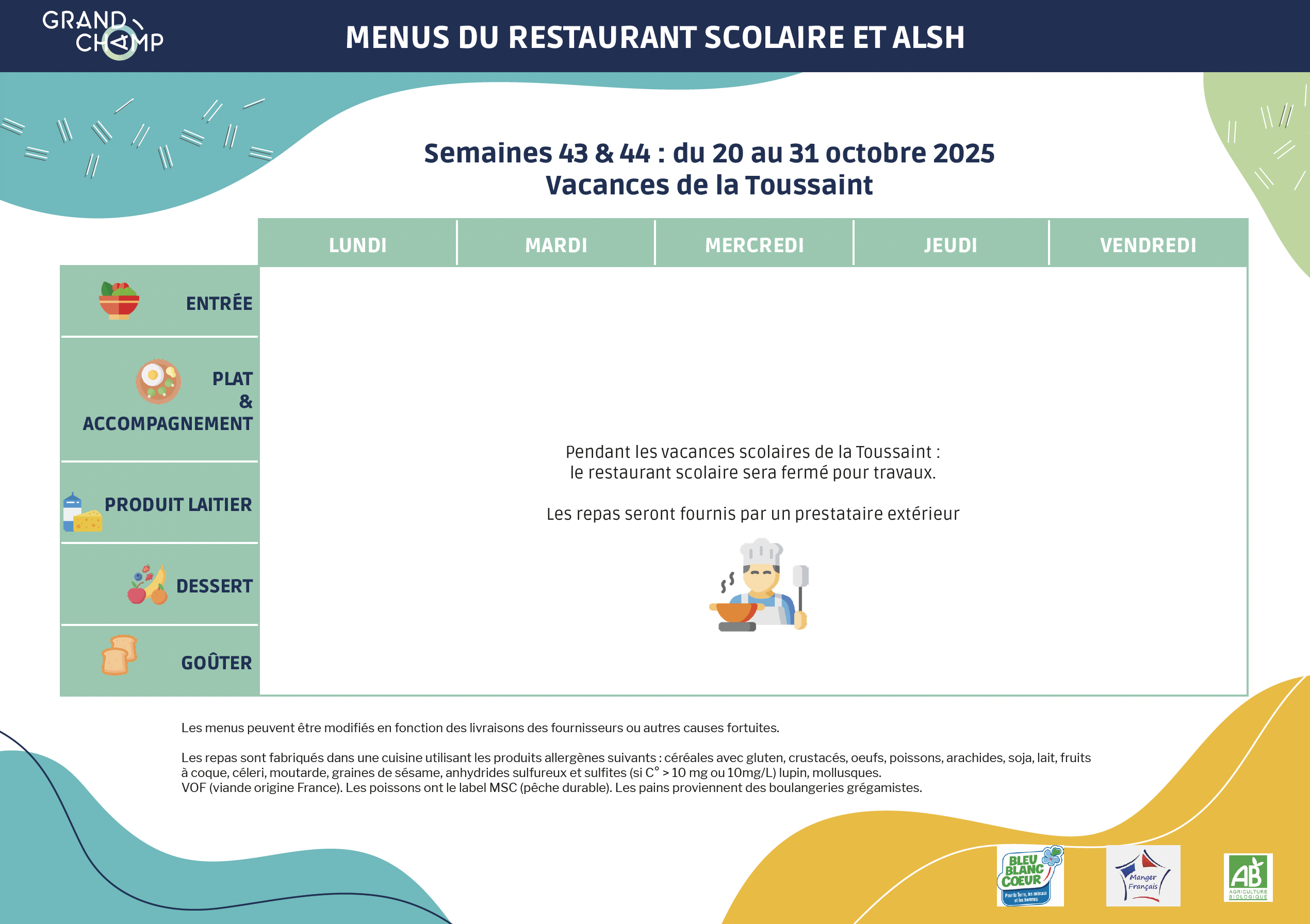 Retrouvez ci-dessous les menus annoncés en aperçu pour les prochaines semaines.