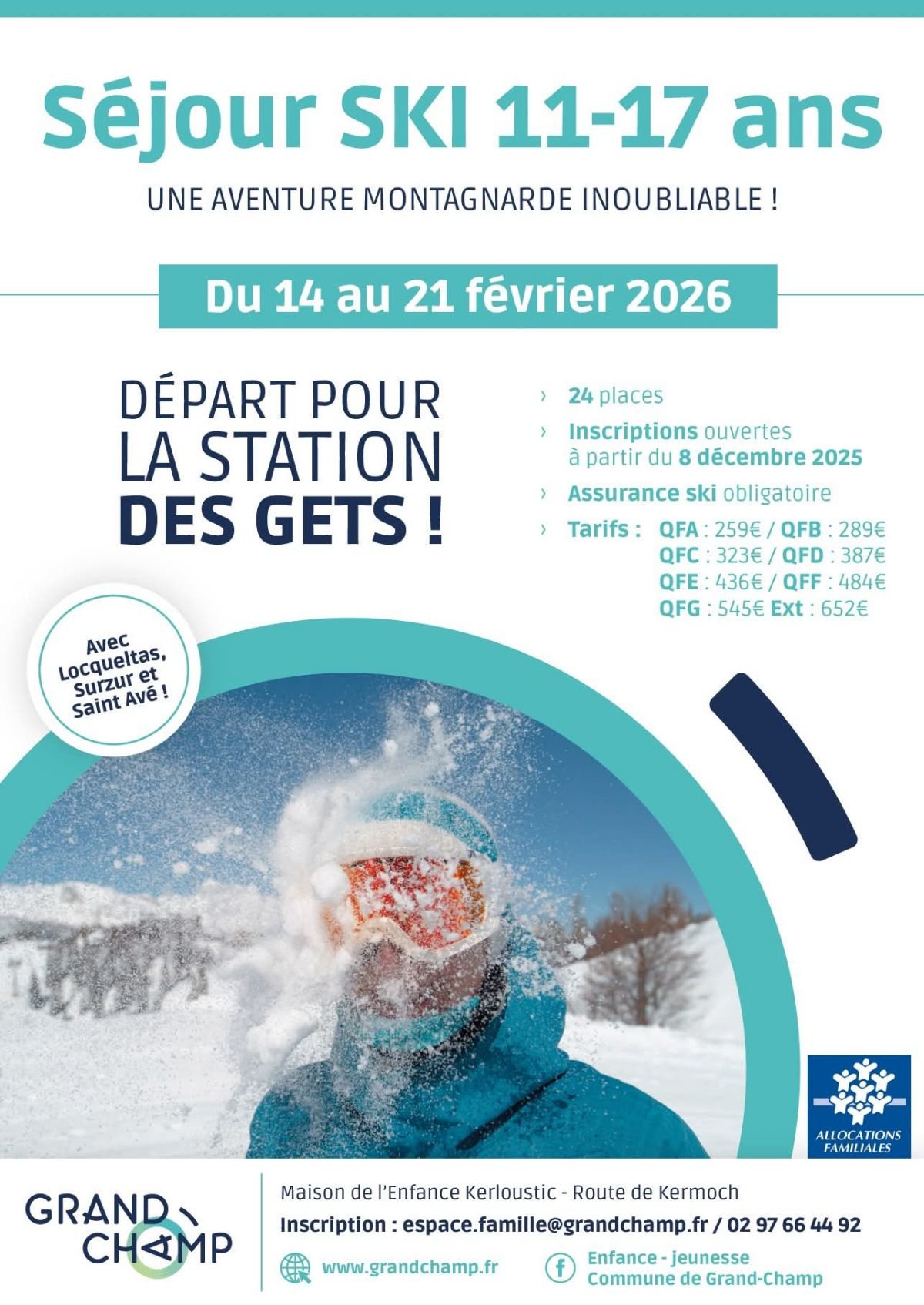 Du 14 au 21 février 2026, 24 jeunes de Grand-Champ s’élanceront direction la station des Gets, accompagnés par leurs animateurs.