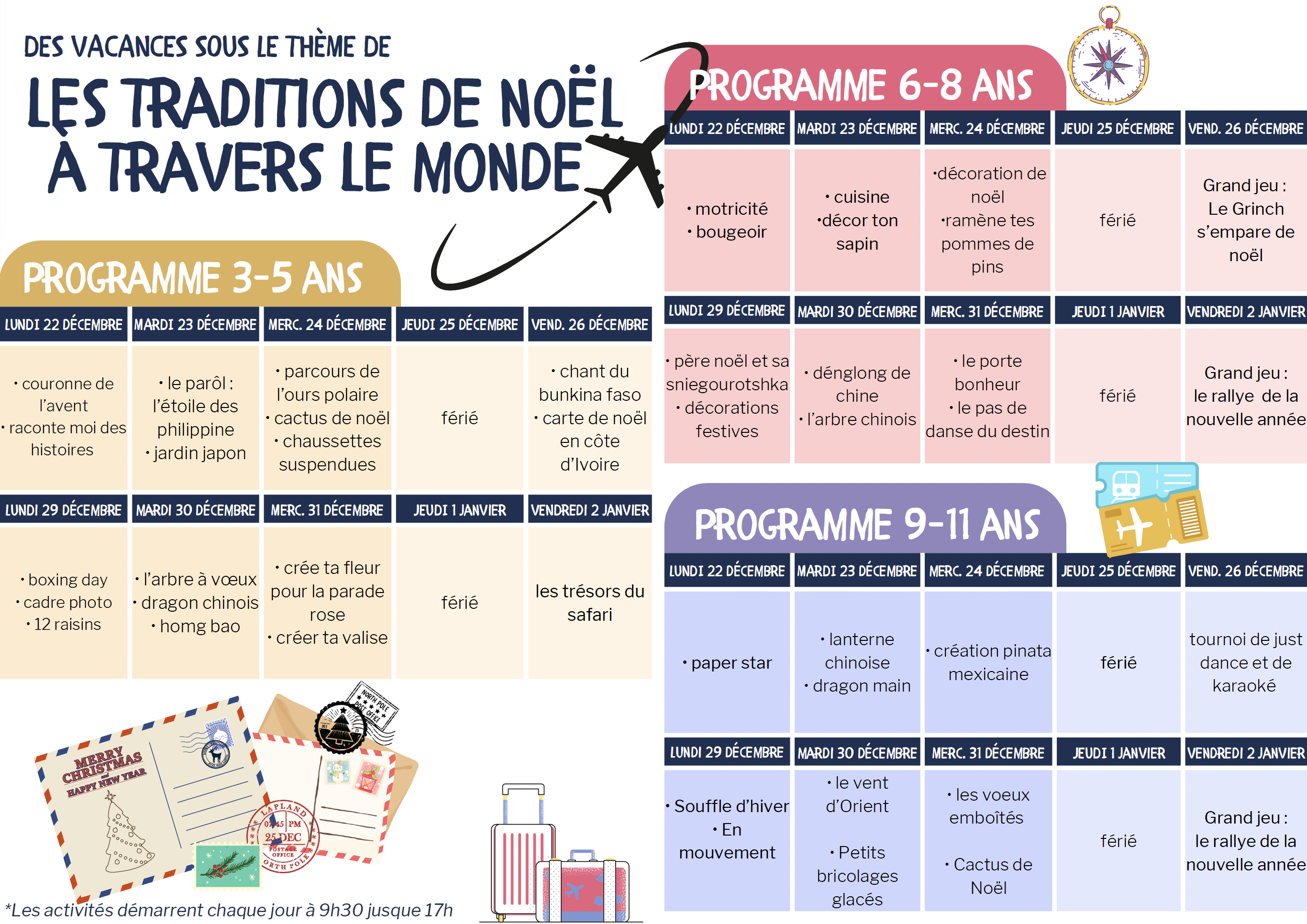 Consultez le programme des vacances ci-dessous, ou téléchargez la plaquette ci-contre, à droite dans le bloc bleu des téléchargements !