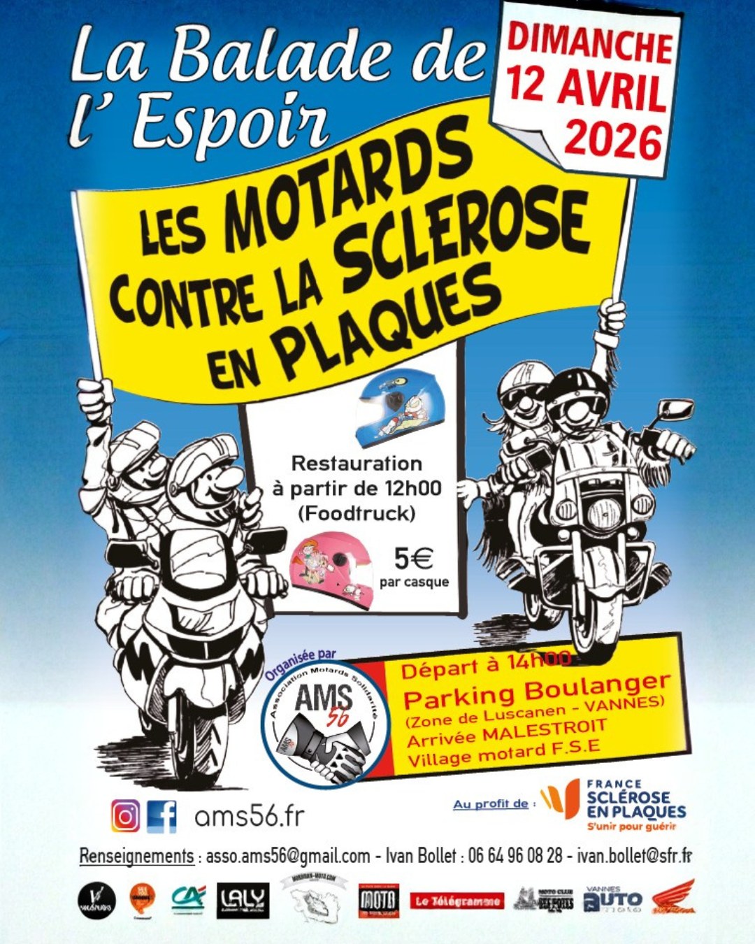 Le dimanche 12 avril 2026, les motards se mobilisent à nouveau pour soutenir la recherche contre la sclérose en plaques lors de La Balade de l’Espoir, organisée par l’AMS 56 – Association Motards Solidarité 56.