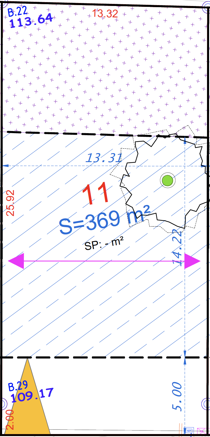 Parcelle du lot 11 : d'une surface de 369 m² au prix de 150 €/m² soit 55 350 euros