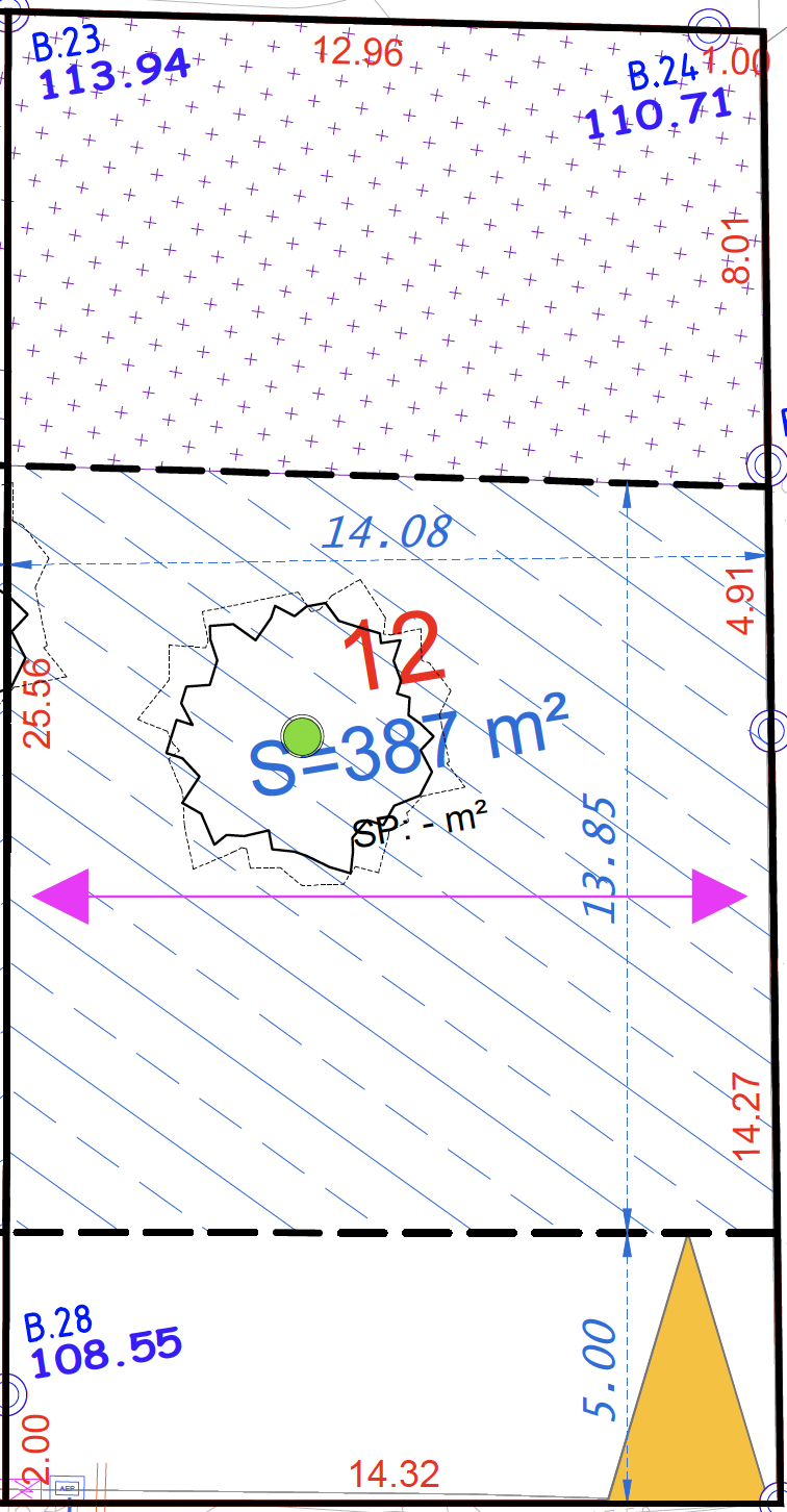 Parcelle du lot 12 : d'une surface de 387 m² au prix de 150 €/m² soit 58 050 euros